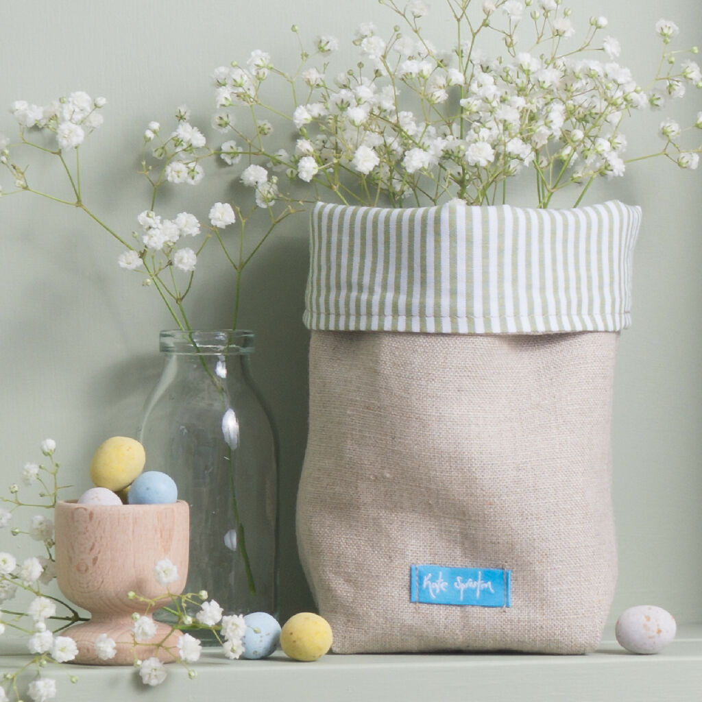 Made from Irish linen and lined with a delicate green striped cotton lining, this little pot is sure to enhance your Easter décor and add a touch of country cottage chic.