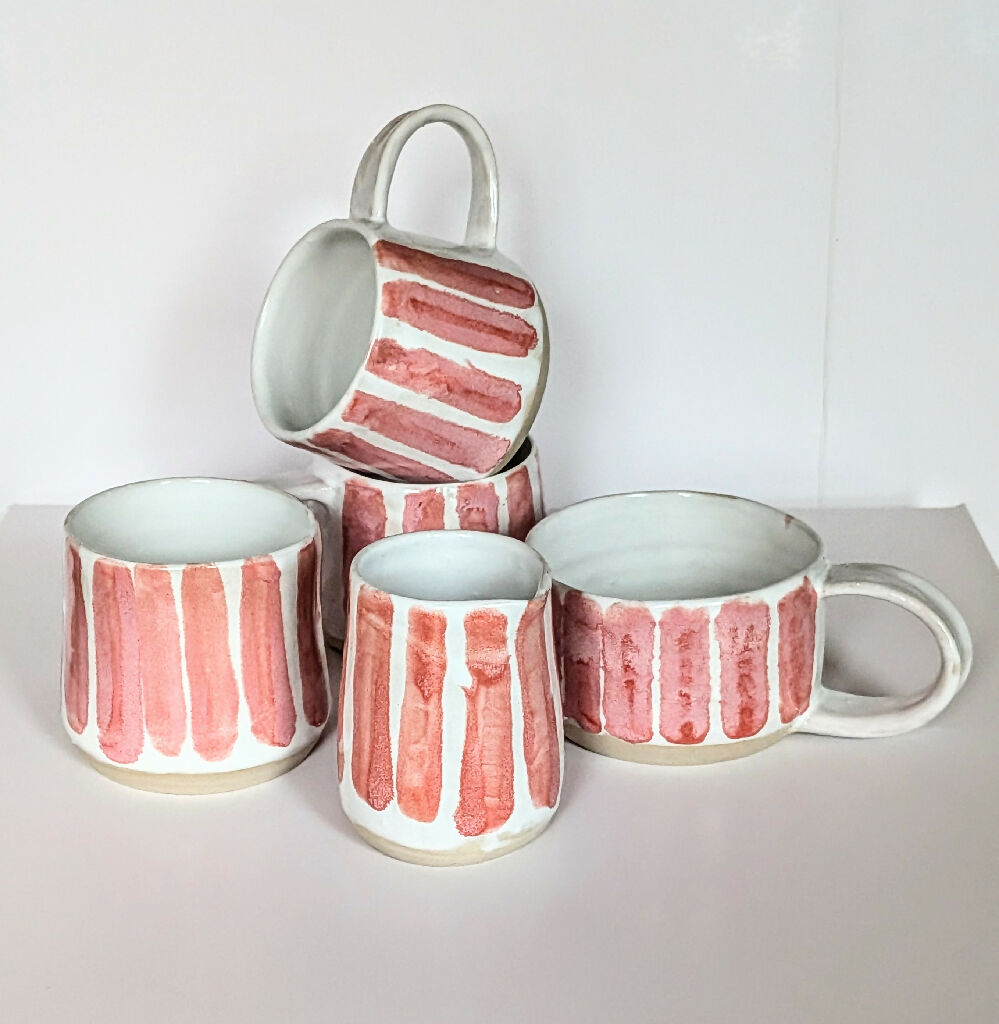 Pink striped glaze on a soft white base