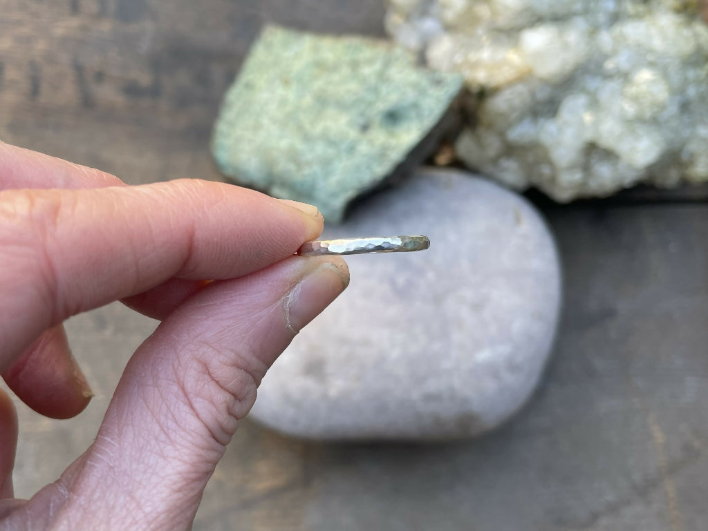 Handcrafted in our UK studio, the Silver Narrow Luna Ring draws inspiration from the subtle beauty of the moon’s surface. Gently hammered to create an irregular, rustic texture, each ring is completely unique, capturing the natural character of this celestial design.
