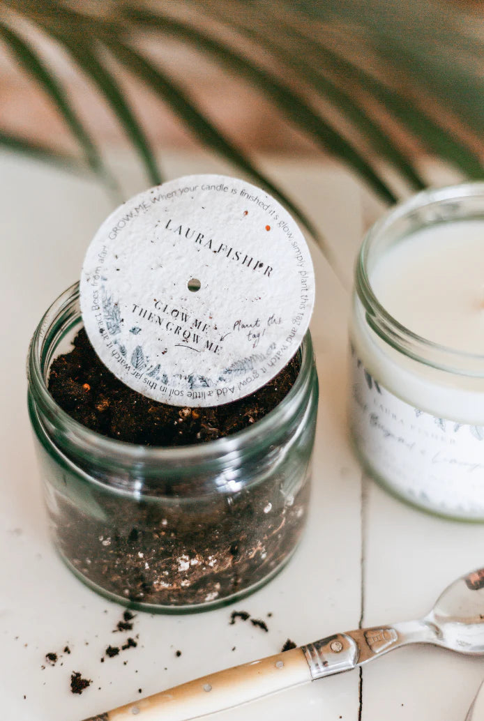 Plantable packaging - to turn your candle jar into a jar of bee friendly flowers (instructions included).