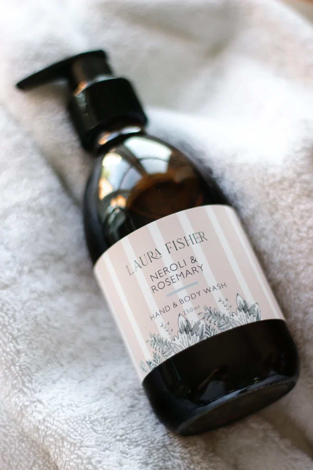Cleanse & nourish with our essential oil Hand & Body wash. Delicate floral notes of neroli, refreshing rosemary infused with calming lavender. Gently lather into skin to leave your skin feeling refreshed, rejuvenated & delicately scented.