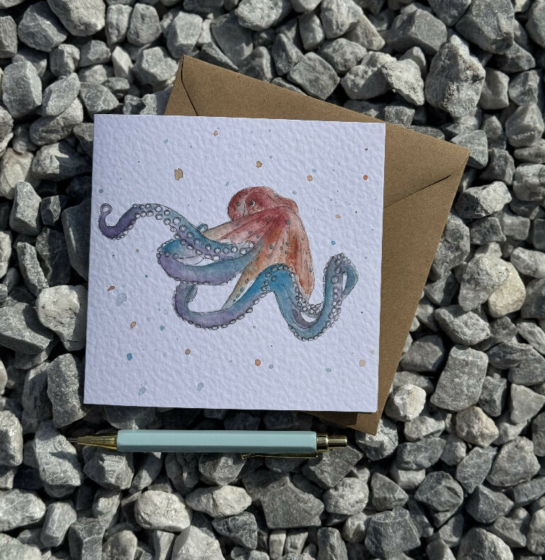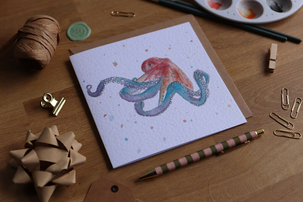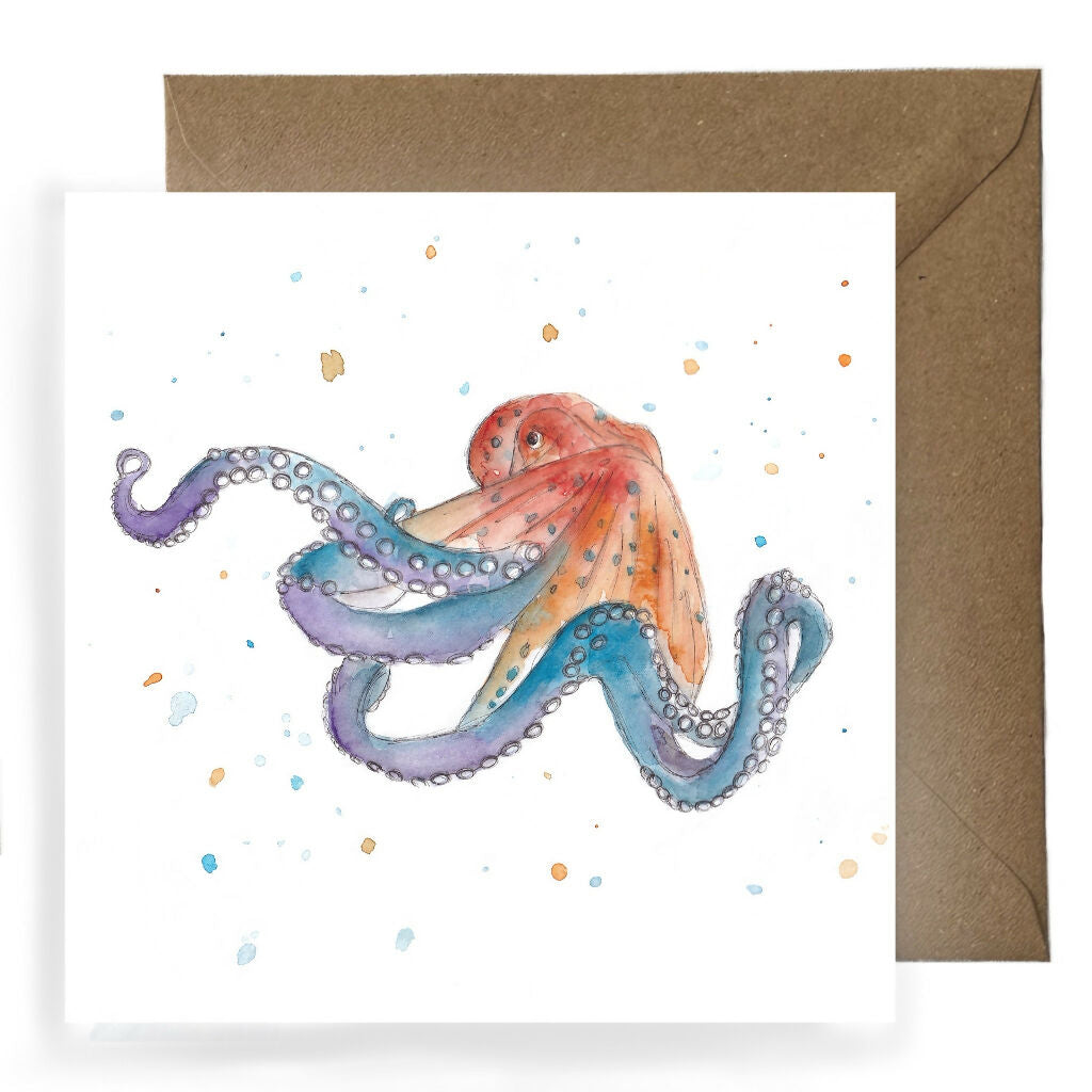 Featuring a watercolour illustration of colourful Octopus with watercolour splash details. Why not create the perfect gift and pair it with a matching keyring or coaster.