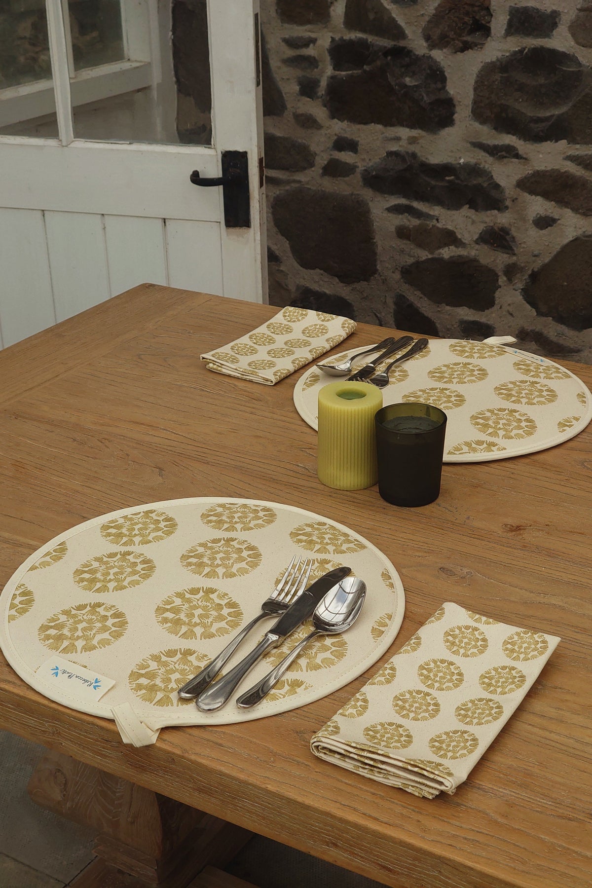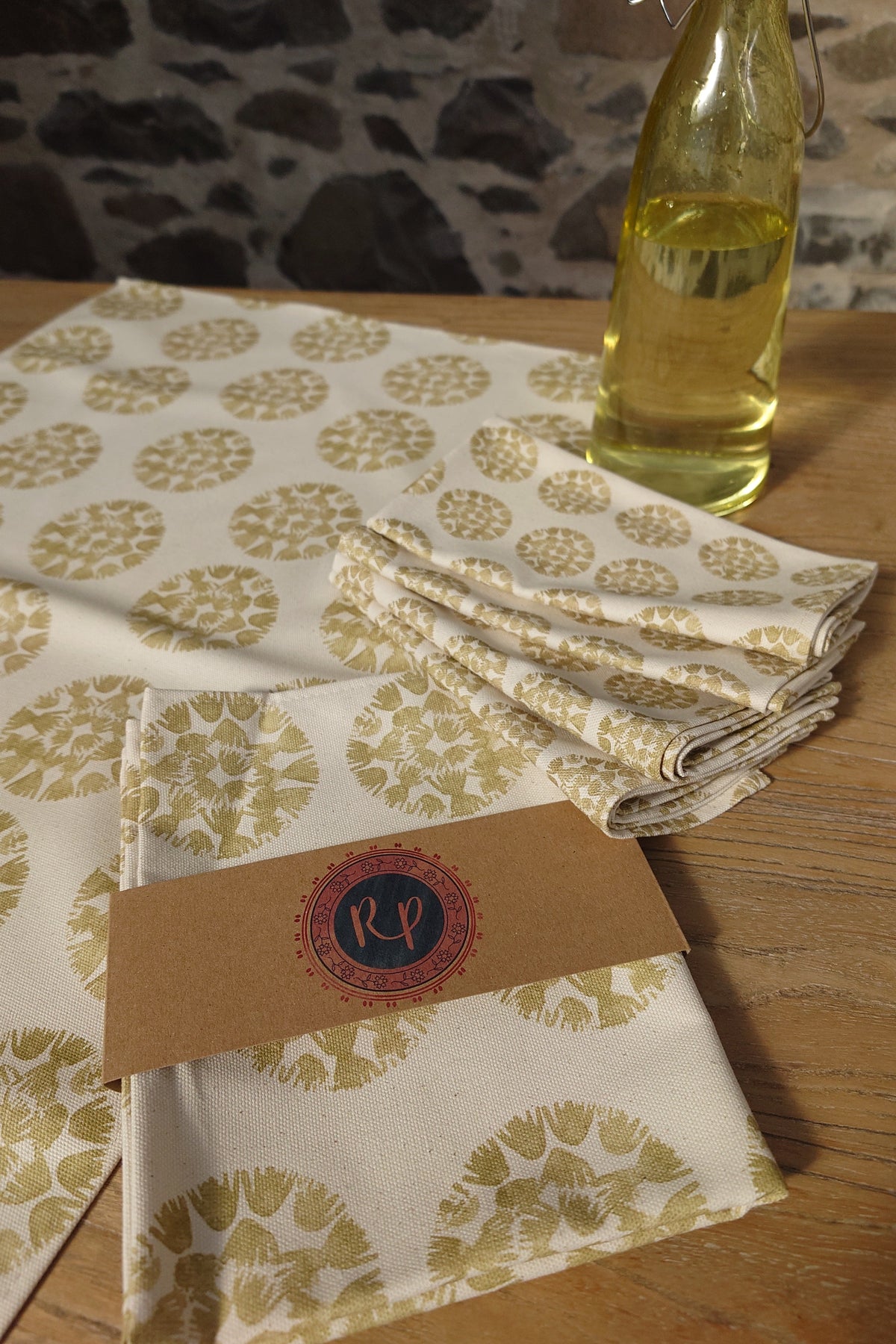 A stylish and practical Napkin in the Machair Clock Gold Green collection hand-painted design.