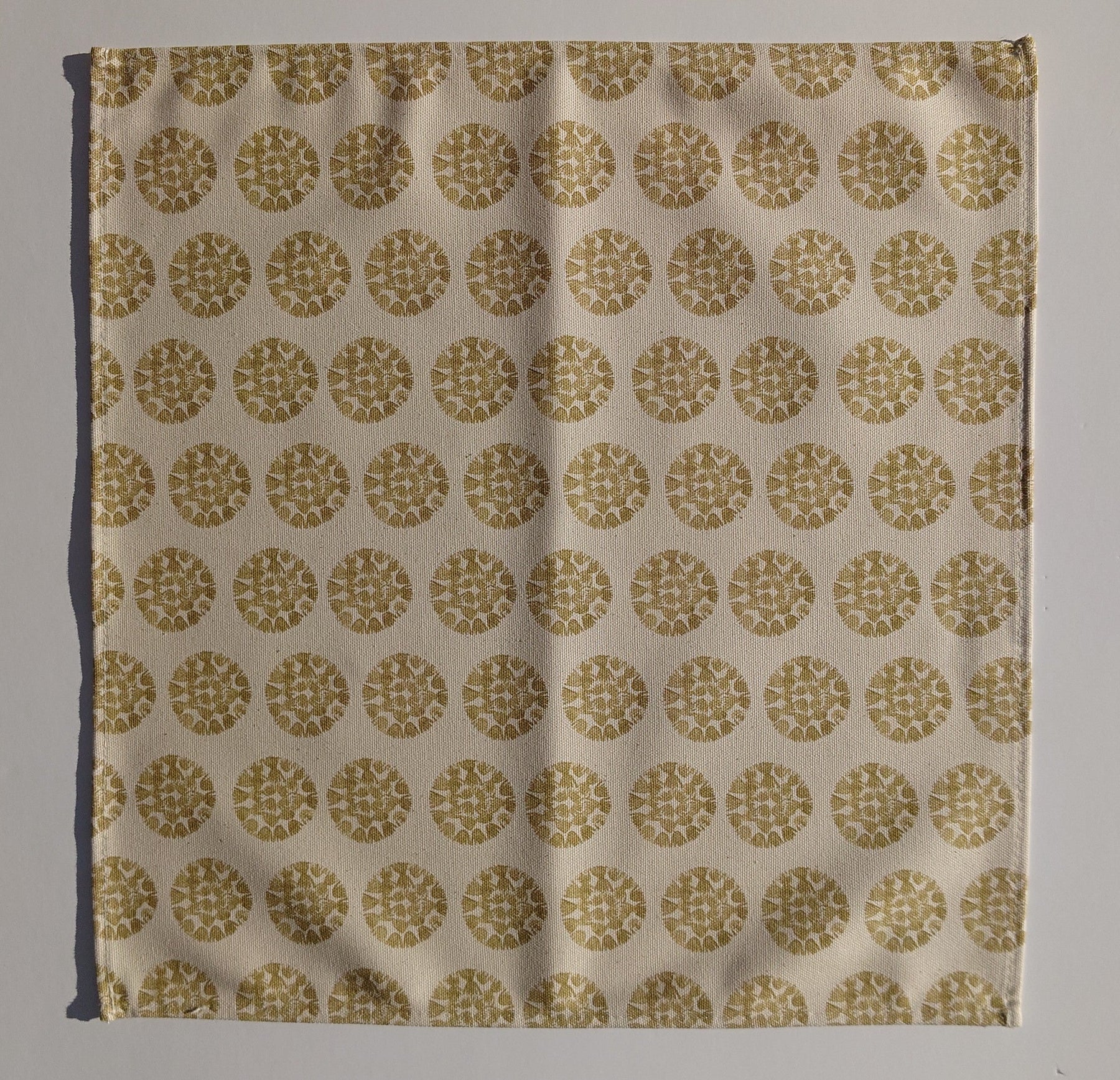 100% organic panama natural cotton. Each napkin may differ slightly due to the handmade quality. The placement of the print will be individual to every product to maintain its unique quality.