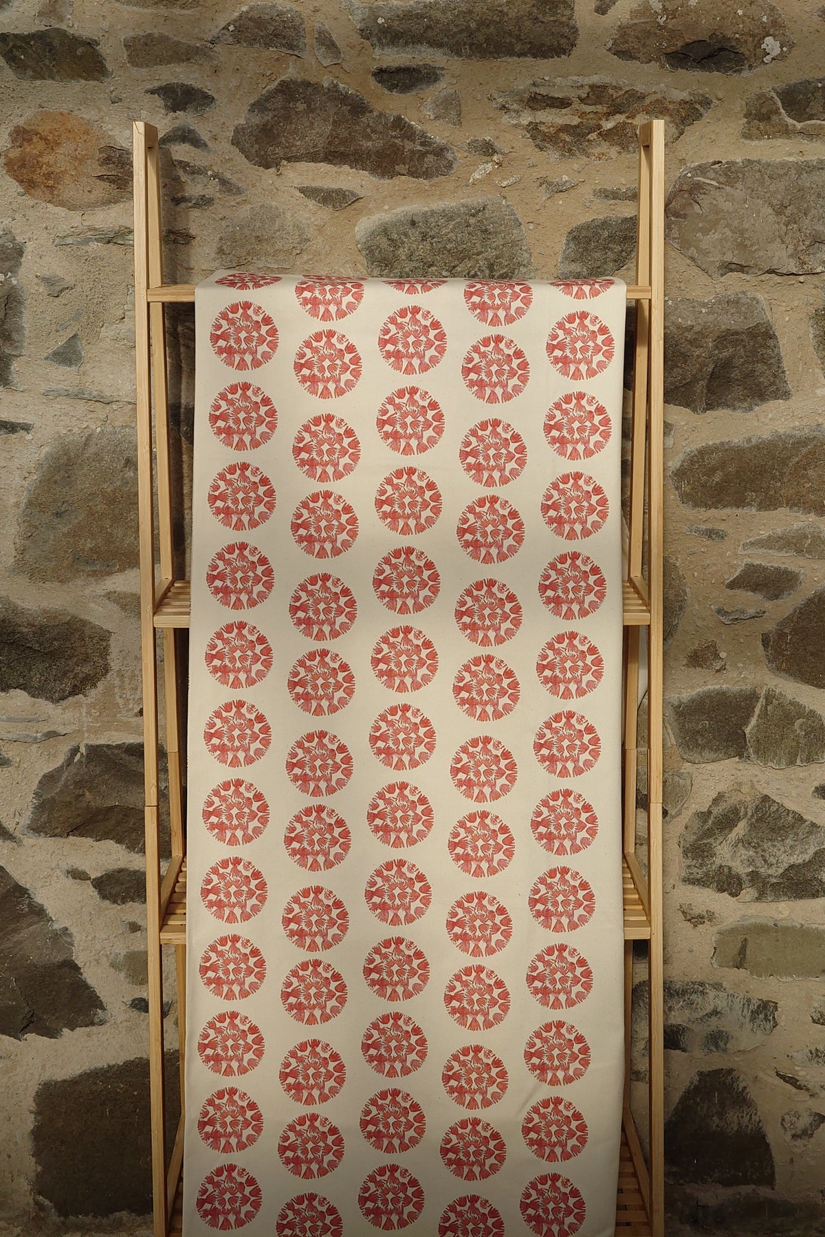 100% organic panama natural cotton. Each Table Runner may differ slightly due to the handmade quality. The placement of the print will be individual to every product to maintain its unique quality.