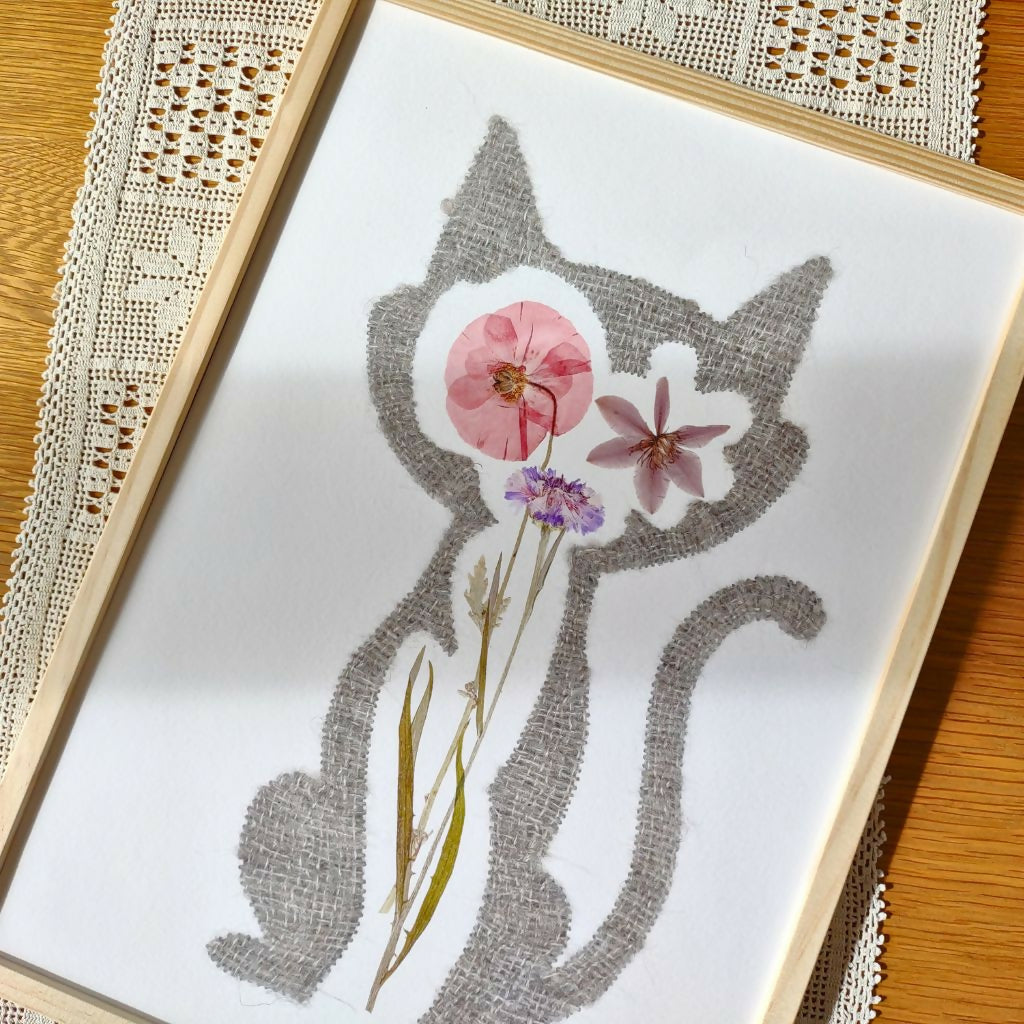 Designed using pressed flowers and hand embroidered silk and alpaca stitches, the detail in this cat print is incredible! Every stitch of the fur actually looks real, thanks to the purrrfect giclee printing process.