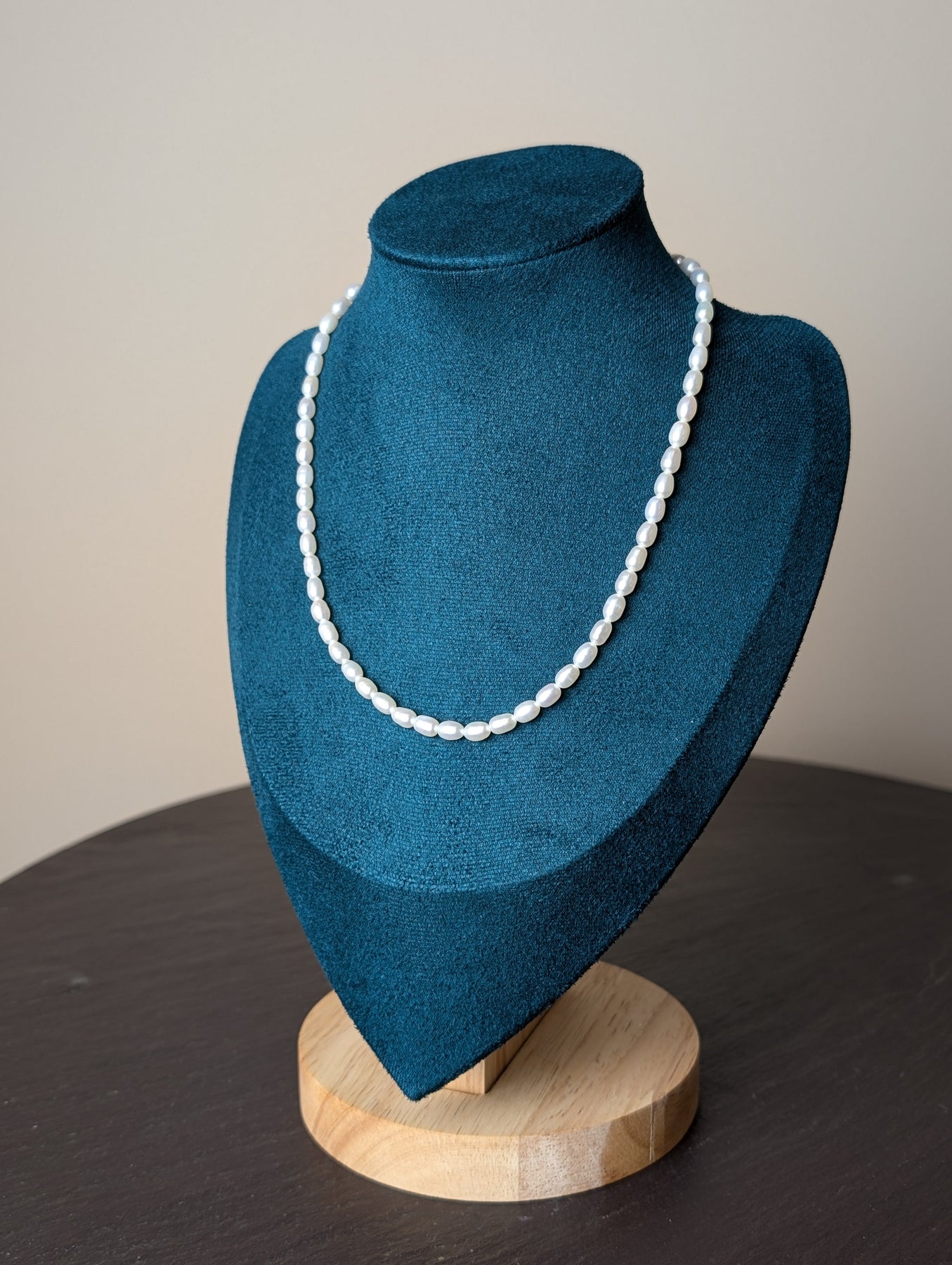 A string of rice-shaped freshwater pearls, shaped by water and worn like waves. The Perla Necklace flows with a natural rhythm — imperfect, luminous, and made to echo the sea.
