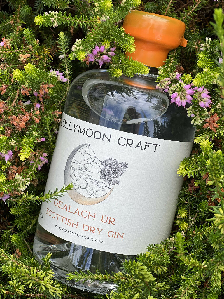 Gealach Úr Gin (New Moon) was inspired by the honeysuckle flowers and hawthorn berries growing in our local hedgerows. It presents a quiet, delicate profile with minimal aroma and classic gin elements. It features clear juniper and coriander notes, with citrus hints reminiscent of clementines or oranges. Created using 13 botanicals including: honeysuckle flowers, fennel, hawthorn berries and cape berries.