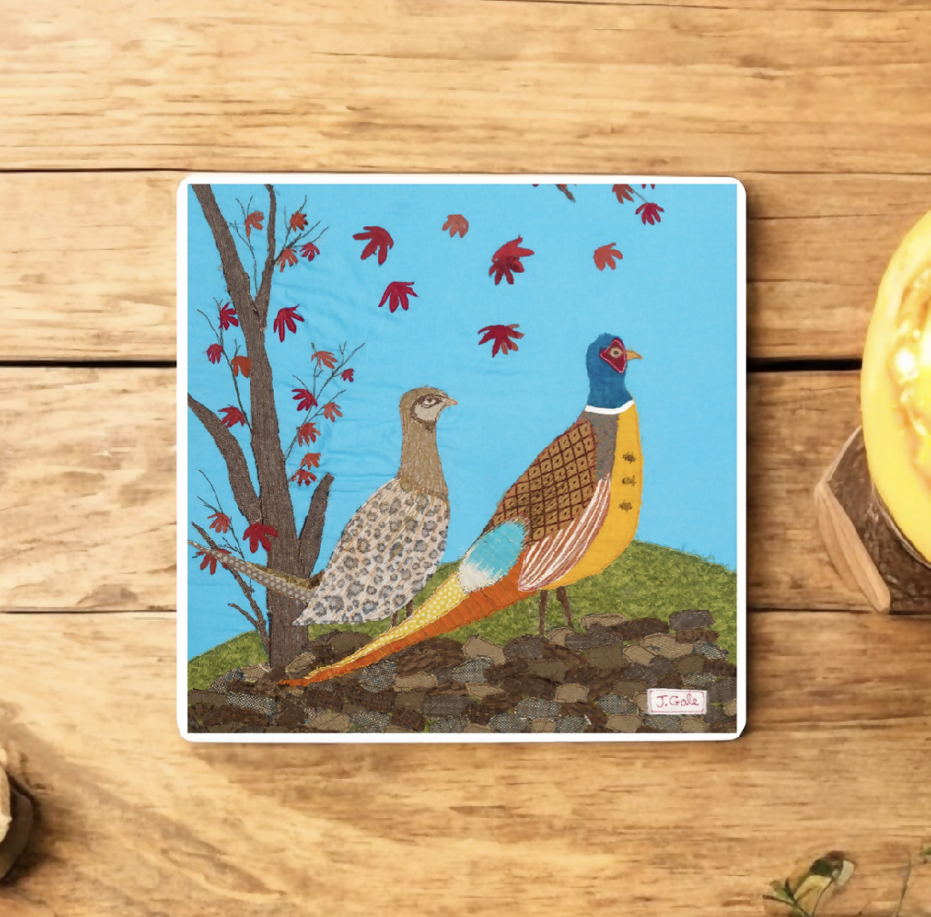 A lovely ceramic drinks coaster featuring a pair of pheasants bracing the autumn air...