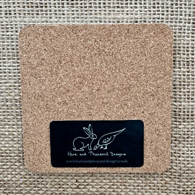 The coaster has a wipeable smooth surface and the inside is made from eucalyptus hardboard for lasting longevity. The coaster is backed with a non-slip cork.