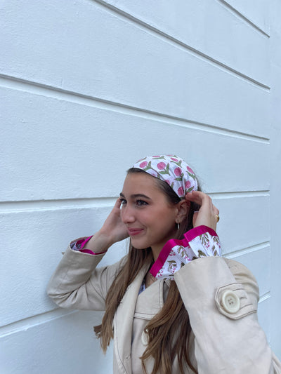 Add a touch of charm to your look with our Pink Block Print Floral Headband. Featuring a delicate floral design created with traditional block-printing techniques, this headband combines artisanal craftsmanship with effortless style. Perfect for keeping your hair in place while adding a pop of colour, it’s a versatile accessory for both casual and dressed-up occasions. Comfortable, stylish, and unique, it’s the perfect way to elevate any outfit.