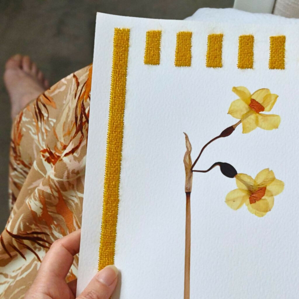 Do you love daffodils, and embroidery? If so, you’ll love this hand embroidered giclee print of pressed daffodils.