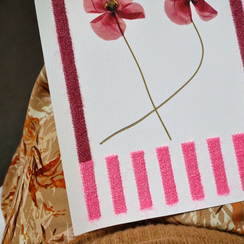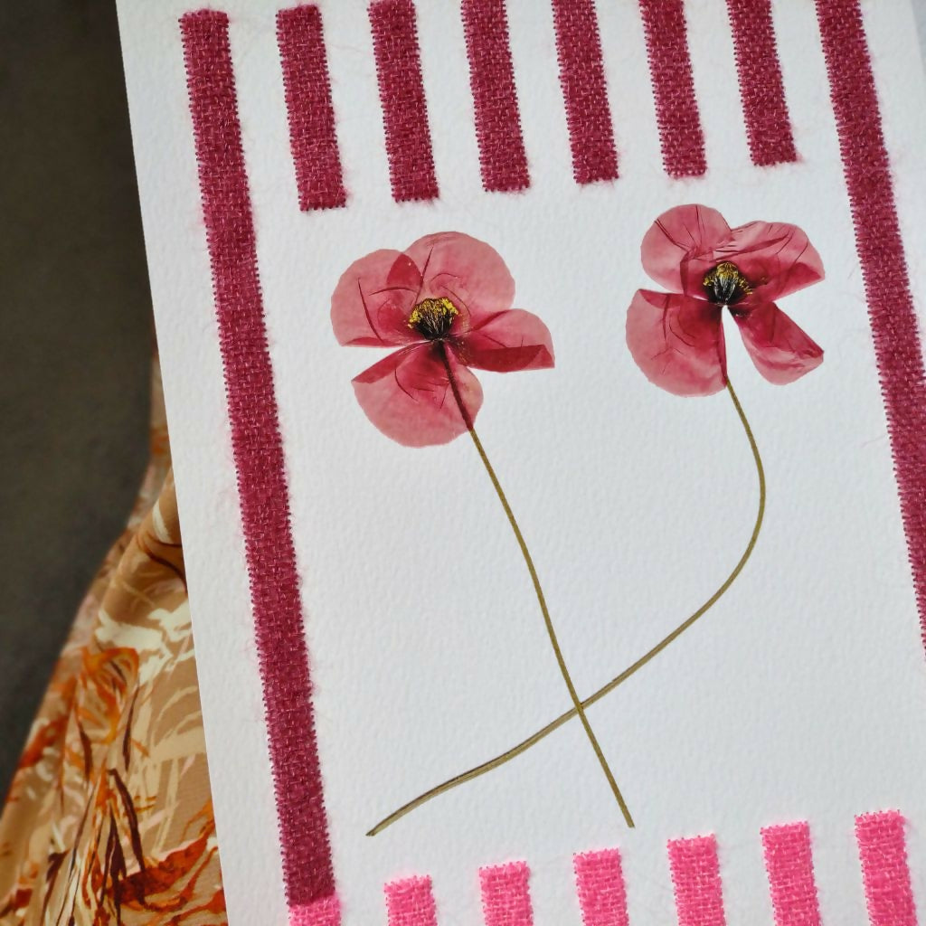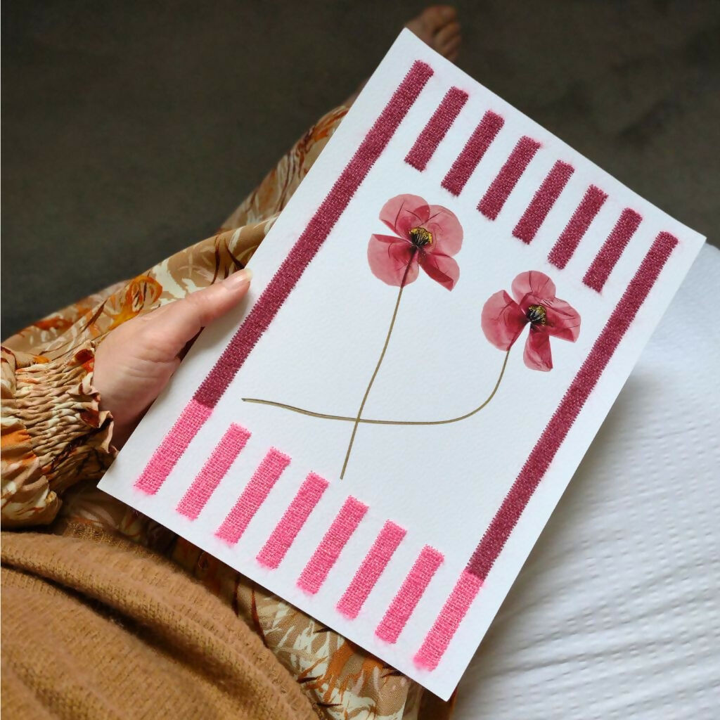 Do you love poppies, and stripes? If so, you’ll love this hand embroidered giclee print of pressed poppies.