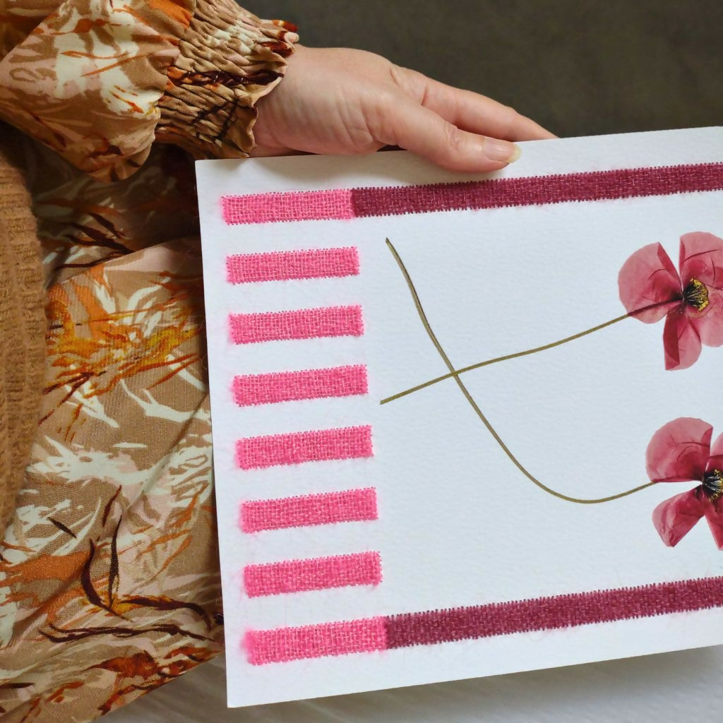 A4, (210 x 297 mm or 8.3 x 11.7 inches) in size, the striped border has been hand embroidered onto the fine art print. The detail in the poppies and hand stitching are stunning and sure to be admired.