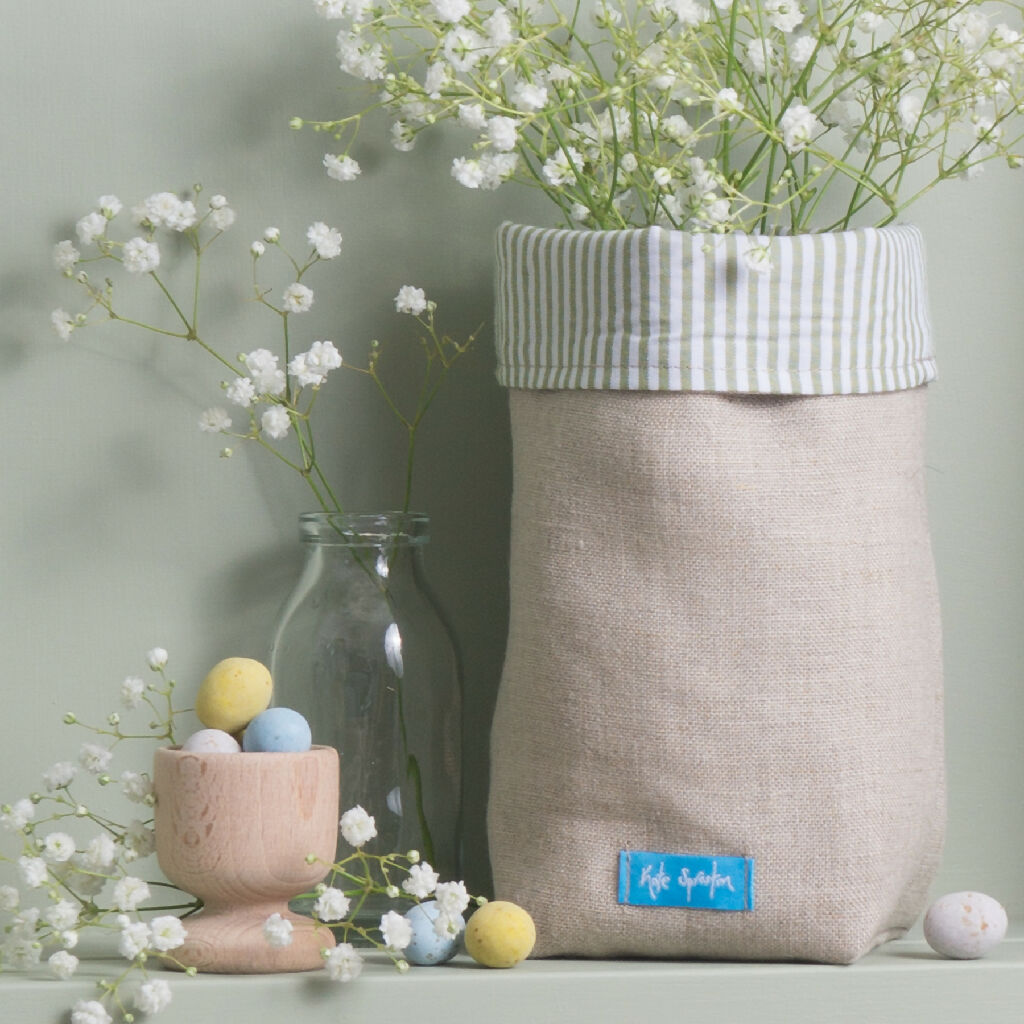 Made from Irish linen and lined with a delicate green striped cotton lining, this little pot is sure to enhance your Easter décor and add a touch of country cottage chic.