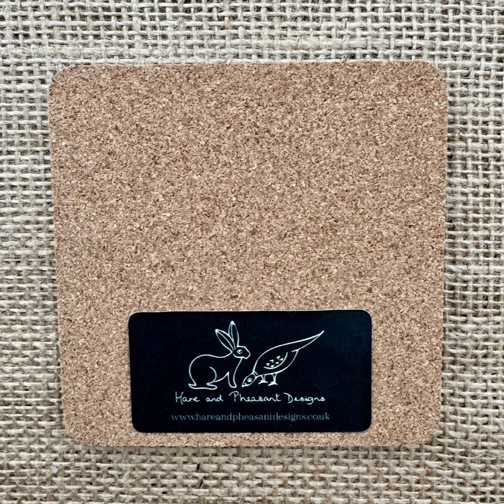 The coaster has a wipeable smooth surface and the inside is made from eucalyptus hardboard for lasting longevity. The coaster is backed with a non-slip cork.