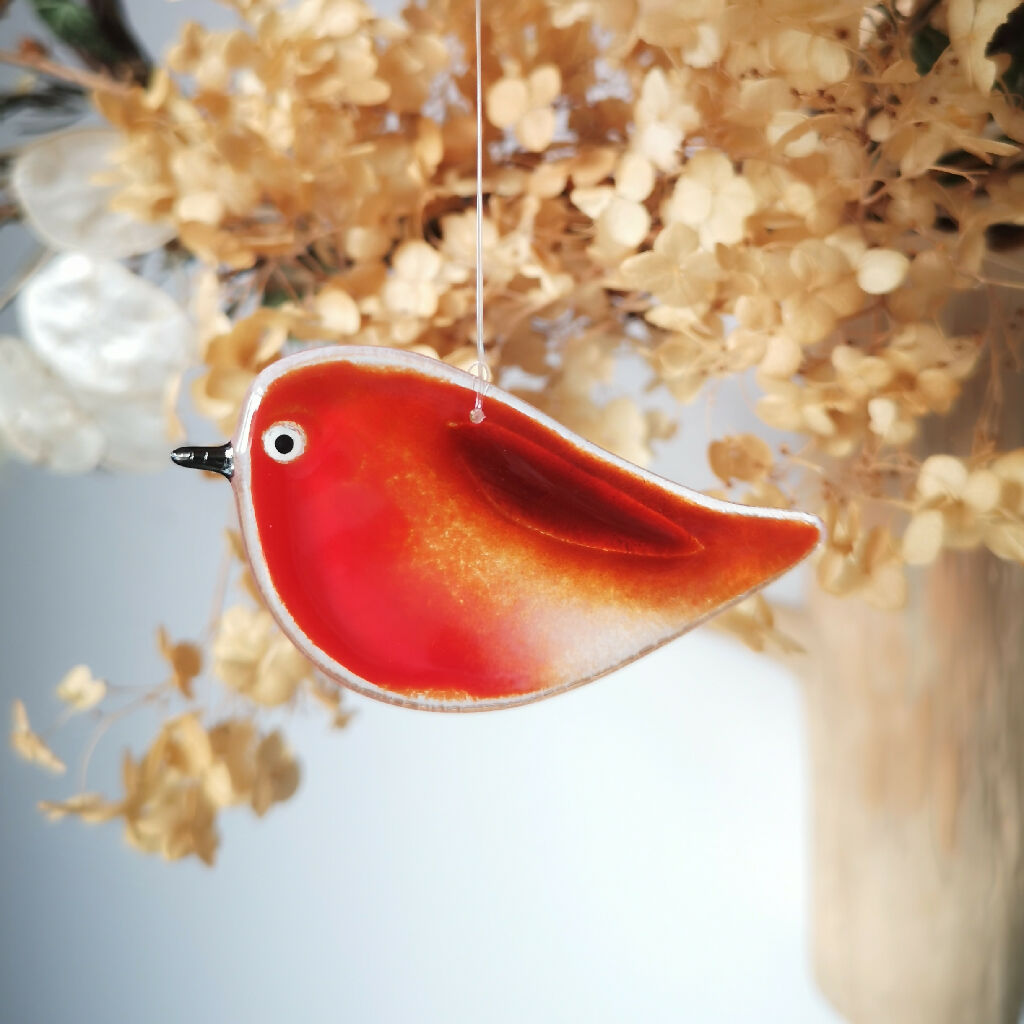 Measuring approximately 6cm x 3.5cm, this robin is presented on an invisible thread, allowing for effortless display around your home to complement your décor.