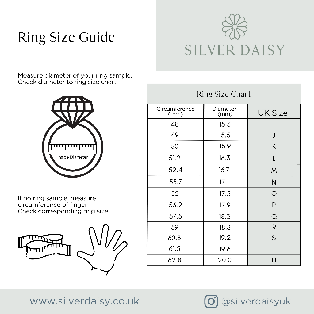 Various sizes are available, please refer to the Sizing Guide, or let me know if you would like me to send a ring sizer in the post.