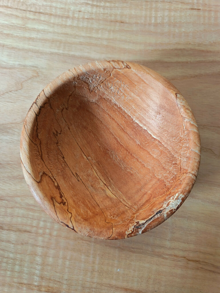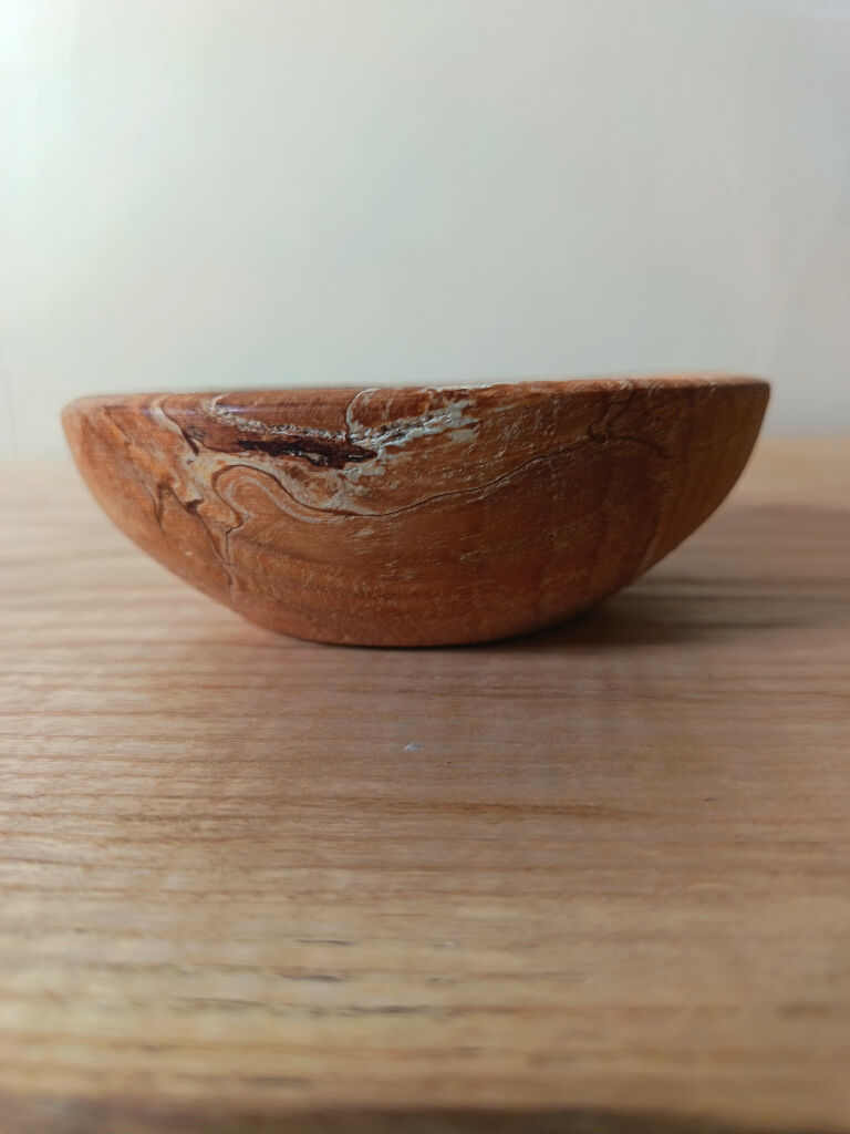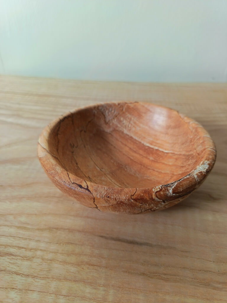 This unique bowl is made from spalted ash. The patterns and grain of this little bowl make it really special. It is turned by myself on a lathe and finished with food safe natural tung oil.