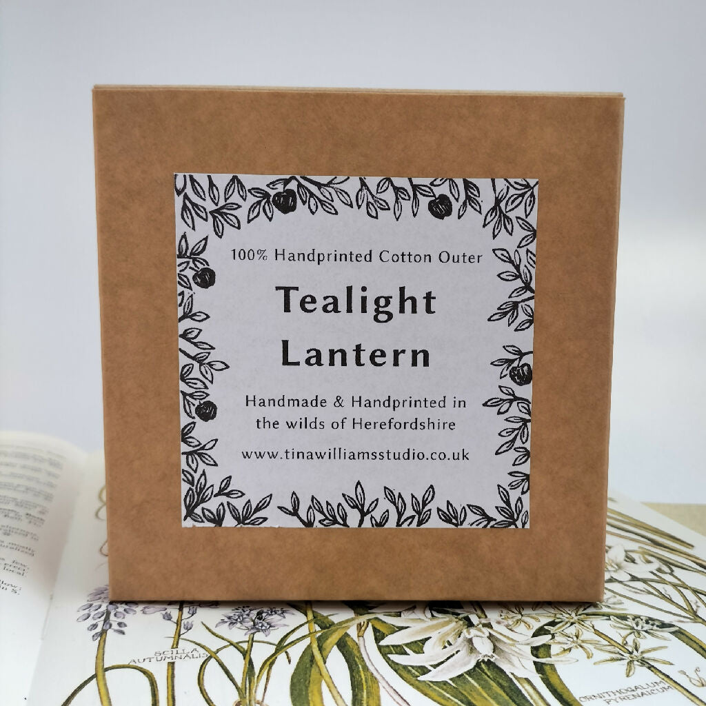The perfect accompaniment to a relaxing spring afternoon or a cosy winters evening, this adorable hand-printed tealight lantern comes with a glass tealight holder, and soy wax tealight.