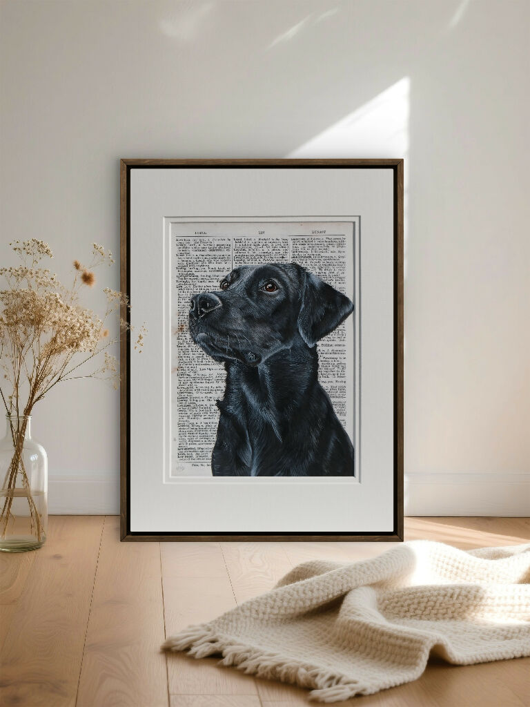 Celebrate the loyalty and gentle nature of the beloved Labrador with this unique, hand-painted artwork. The portrait captures the soulful gaze and glossy coat of a black Labrador, painted with fine detail to bring out the dog’s warmth and character.