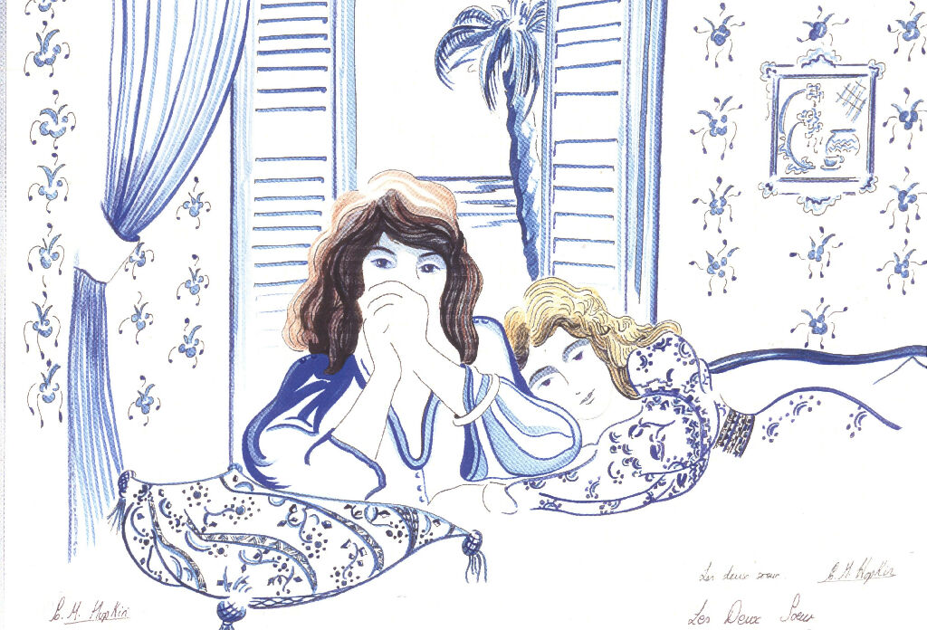 CAROLE MORGAN HOPKIN'S watercolour of Two Sisters is inspired by her many visits to the South of France. The difference between the two characters is shown in their pose and attitude to being drawn. The background is kept light and feminine in atmosphere.