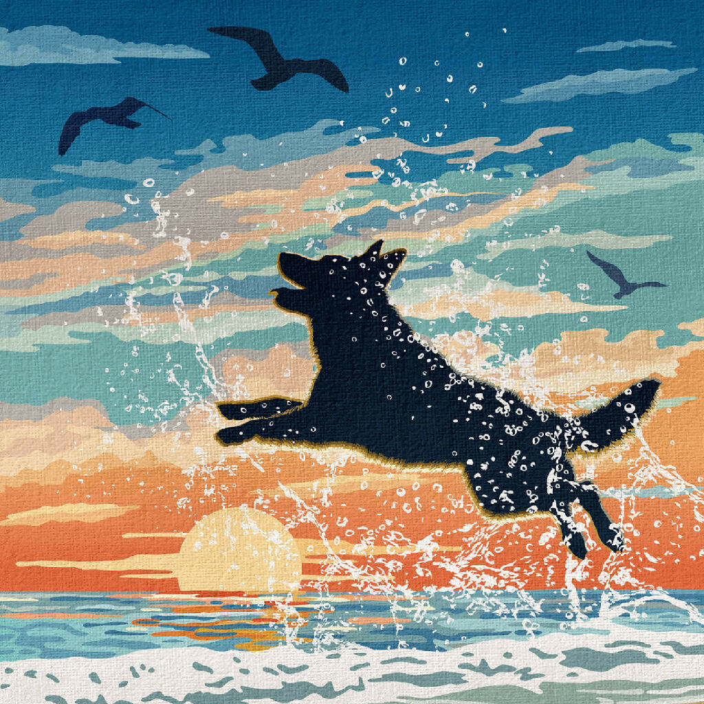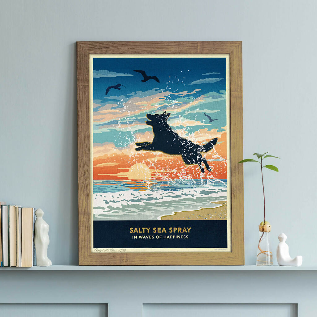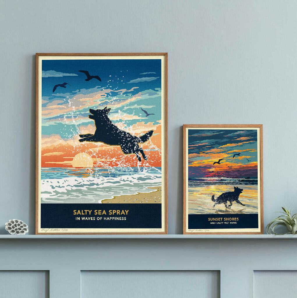 Celebrate the refreshing thrill of the seaside with this beautiful german shepherd silhouette print. Each print is signed and numbered as part of limited-edition print runs.