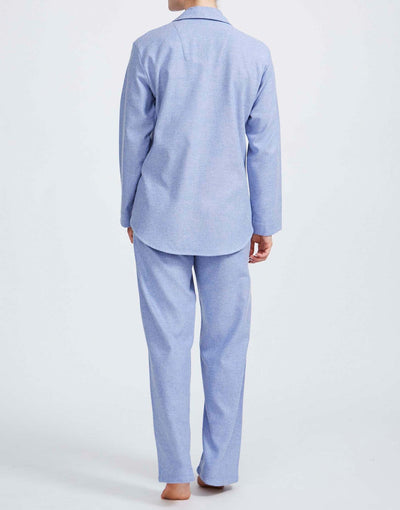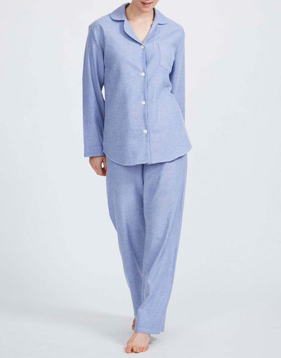 Cosy up in our dreamy brushed-cotton pyjamas. These PJs are exquisite and it’s all thanks to the fabric. The fibres in the cloth are dyed to our own colour specification, then brushed repeatedly – a process which makes them impossibly soft – and finally they are woven with skill to our in-house design. This set comprises a traditional rounded-collar jacket with a breast pocket, and tie-waist trousers with handy side pockets (by popular demand!). If you're unsure about which size to choose, we recommend rounding up for a looser fit and maximum comfort. Relaxing never felt so good.